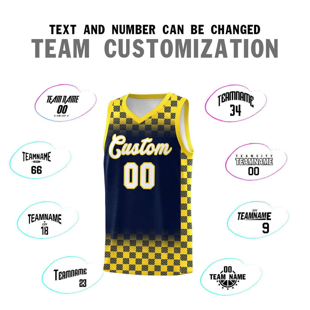 Custom Navy Gold Classic Plaid Pattern Sports Uniform Basketball Jersey