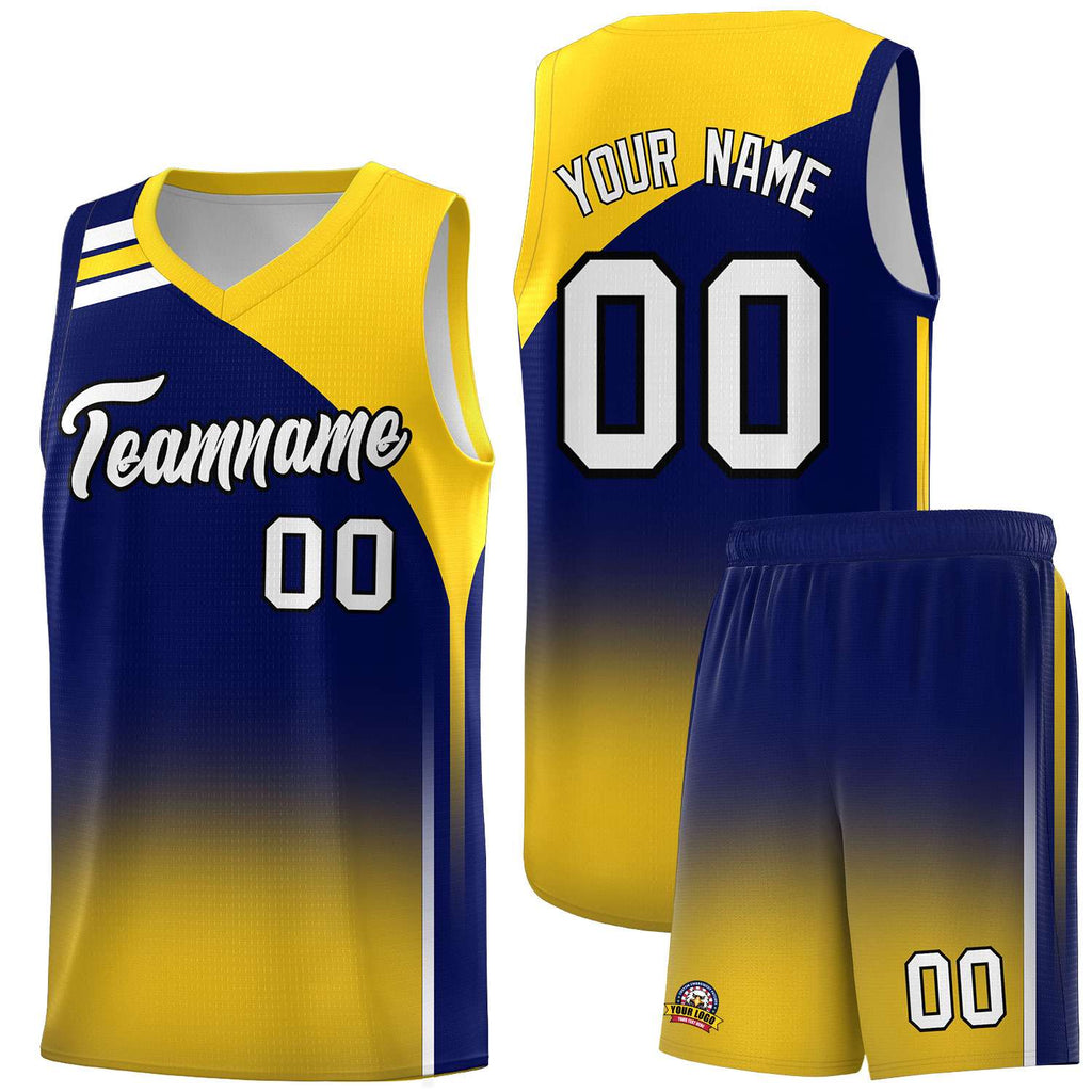 Custom Navy Gold Gradient Fashion Sets Sports Uniform Basketball Jersey