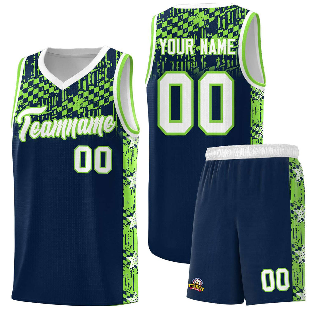 Custom Navy Mosaic Stars Pattern Sports Uniform Basketball Jersey