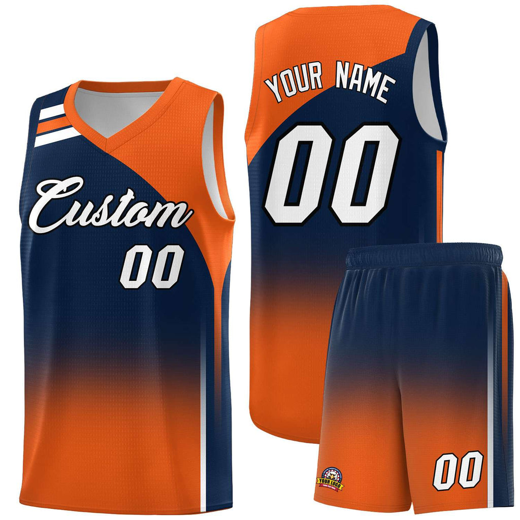 Custom Navy Orange Gradient Fashion Sets Sports Uniform Basketball Jersey