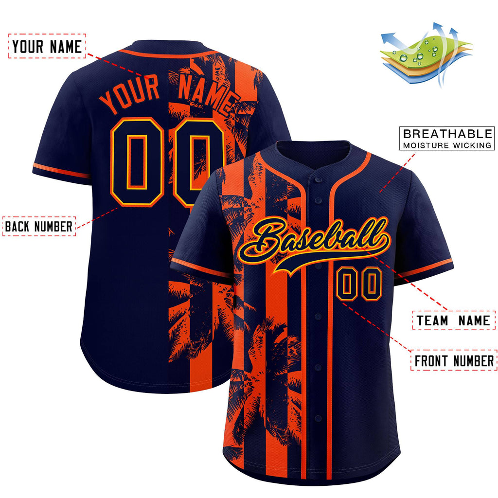Custom Navy Orange Split Fashion Coconut Tree Design Authentic Baseball Jersey
