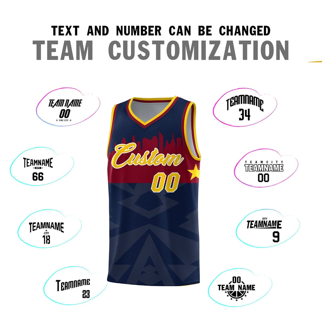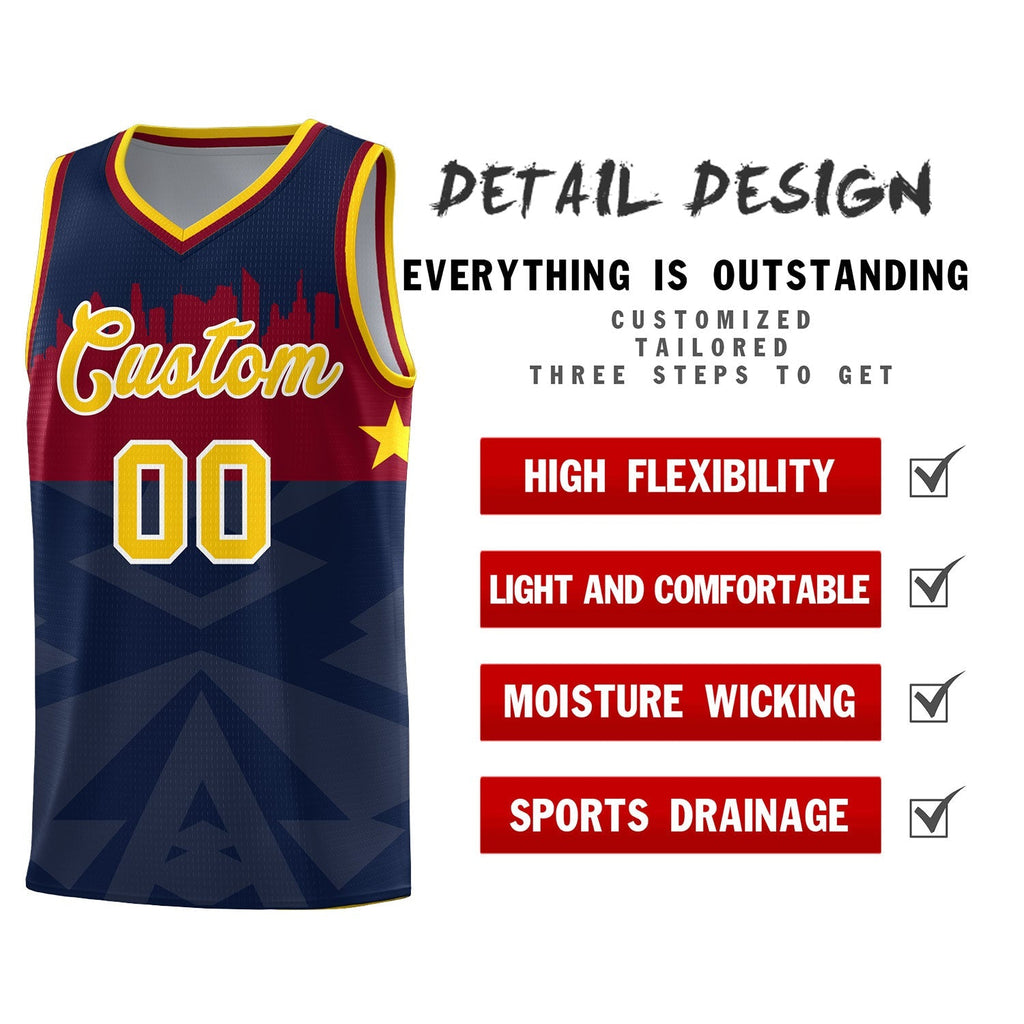 Custom Navy Personalized City Silhouette Pattern Sports Uniform Basketball Jersey