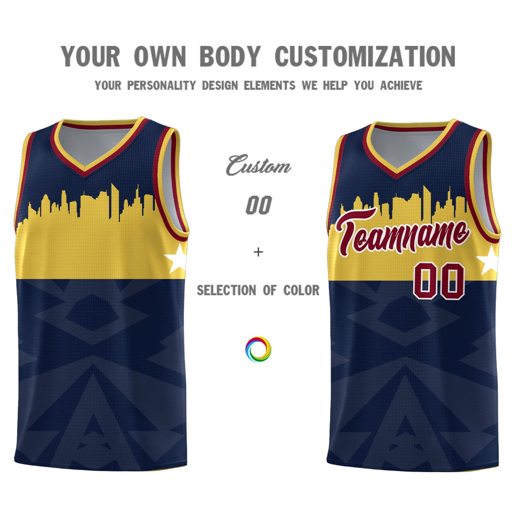 Custom Navy Personalized City Silhouette Pattern Sports Uniform Basketball Jersey