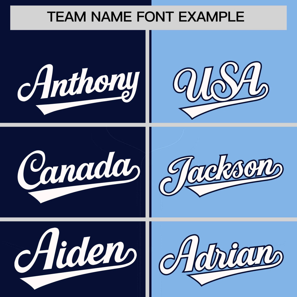 Custom Navy Powder Blue Split Fashion Coconut Tree Design Authentic Baseball Jersey