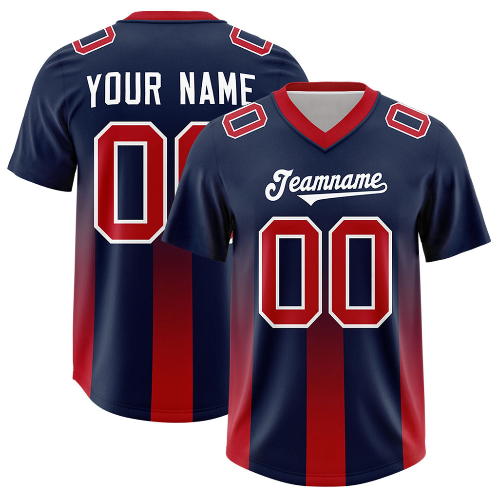 Custom Navy Red Vertical Width Stripe Gradient Fashion Personalized Team Football Jersey