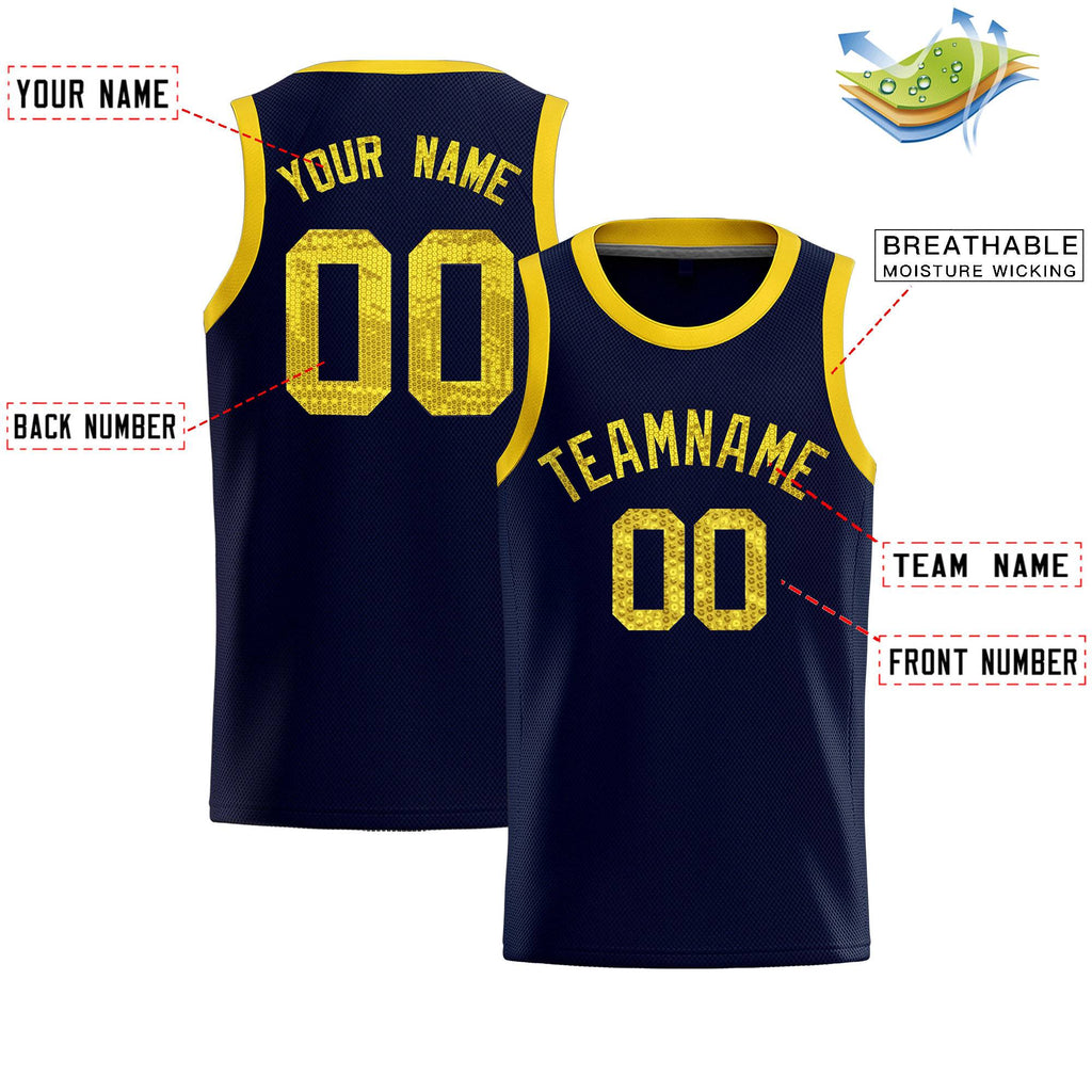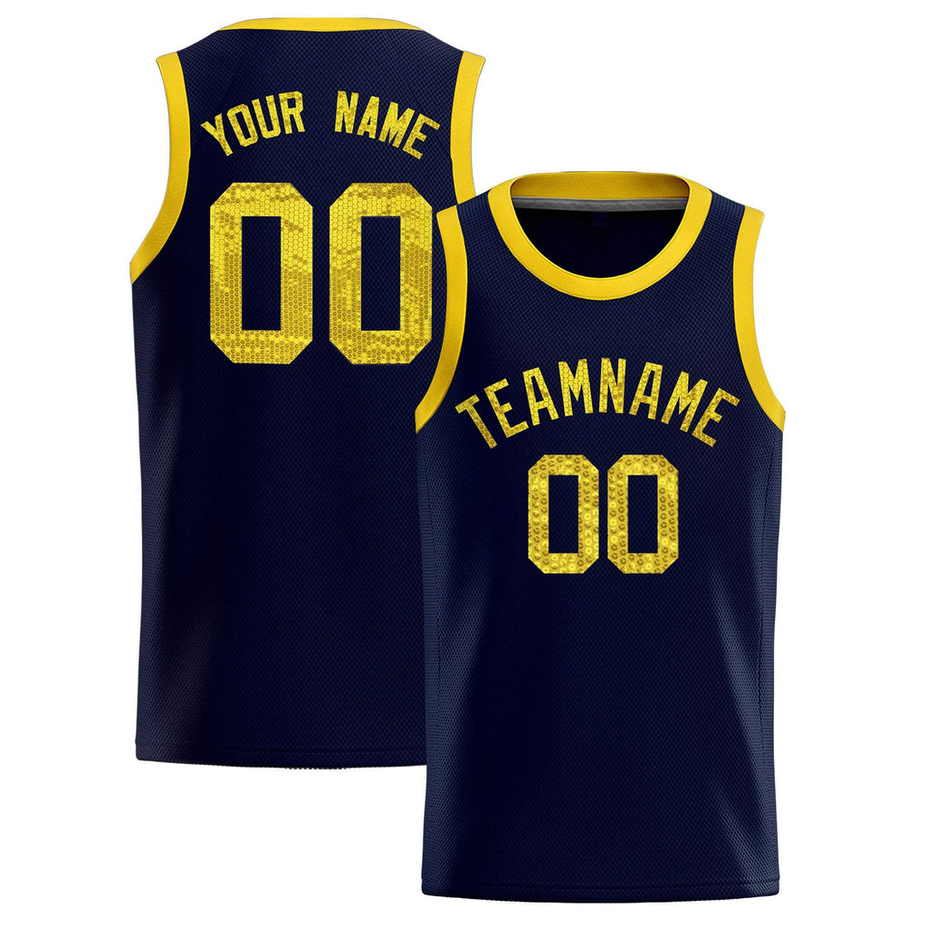 Custom Navy Sequined Tops Athletic Basketball Jersey
