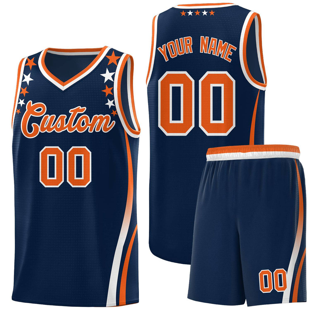 Custom Navy Shoulders Star Pattern Side Color Block Sports Uniform Basketball Jersey