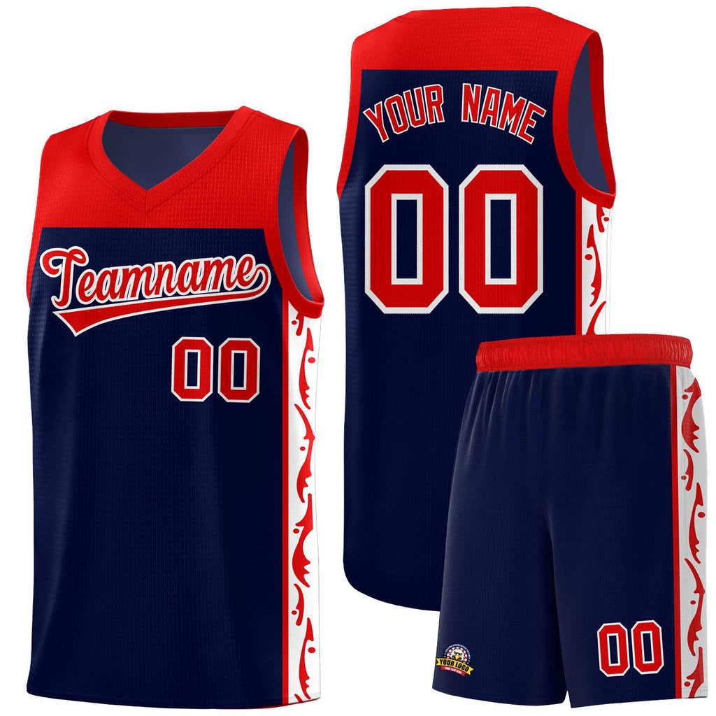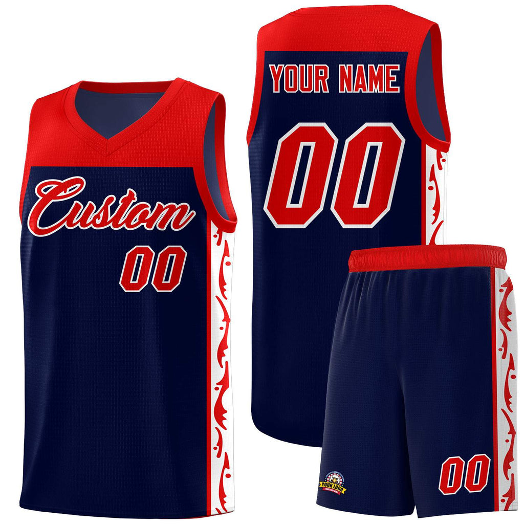 Custom Navy Side Pattern Sports Uniform Basketball Jersey