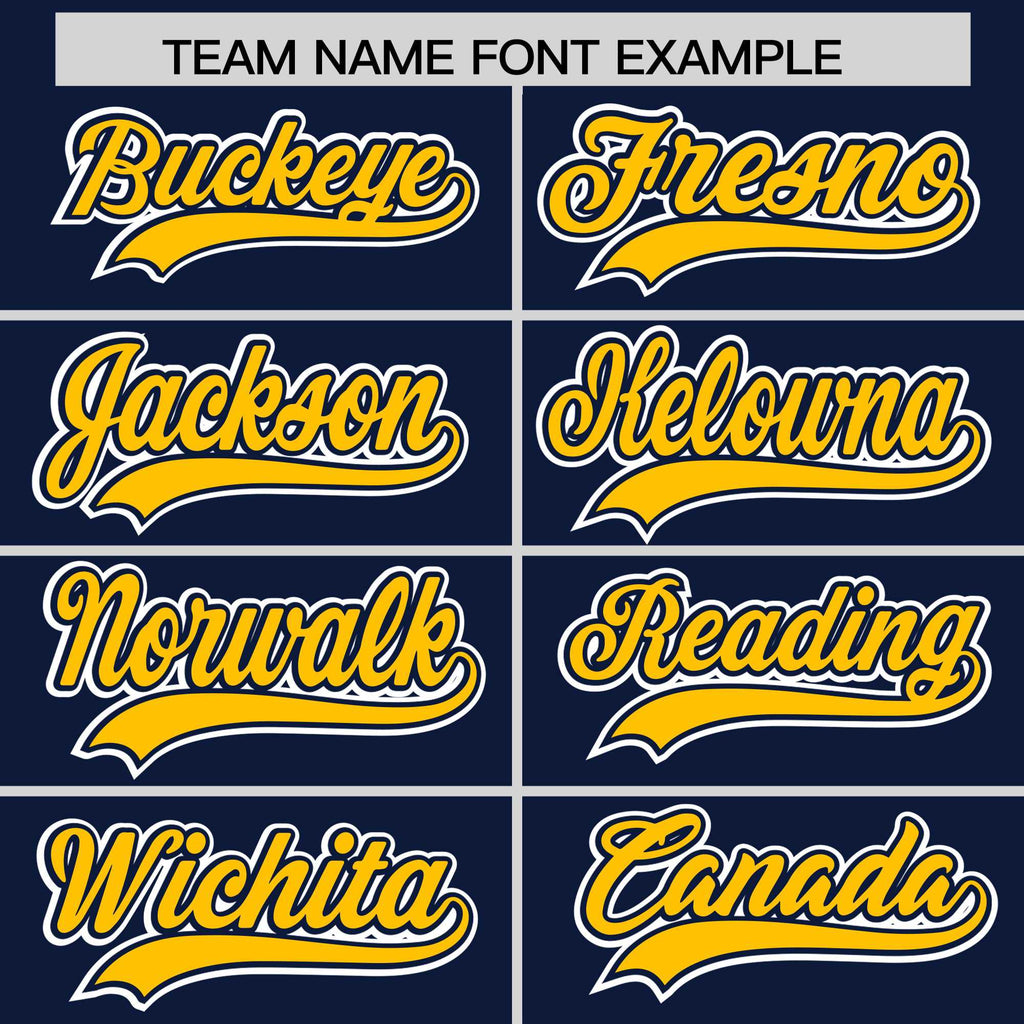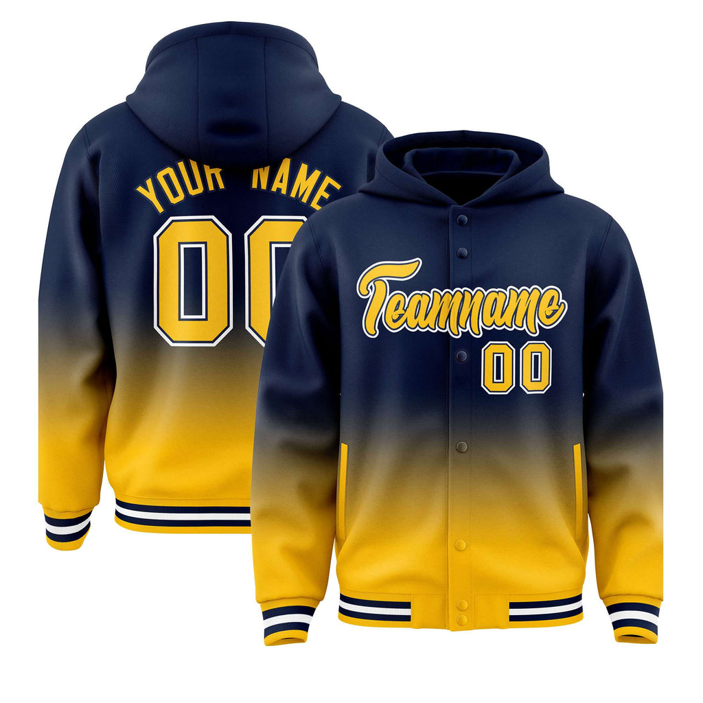 Custom Navy Yellow Varsity Full-Snap Letterman Gradient Jacket Hoodie
