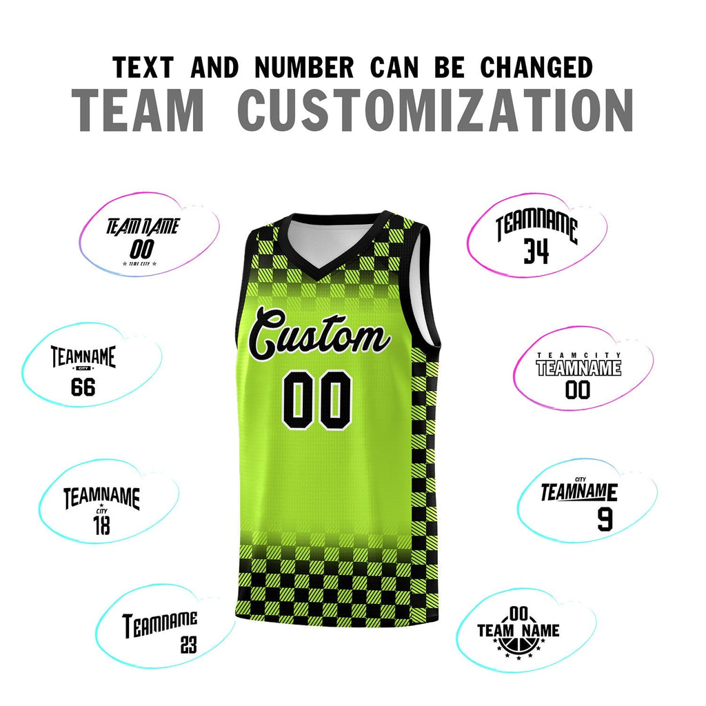 Custom Neon Green Black Classic Plaid Pattern Sports Uniform Basketball Jersey