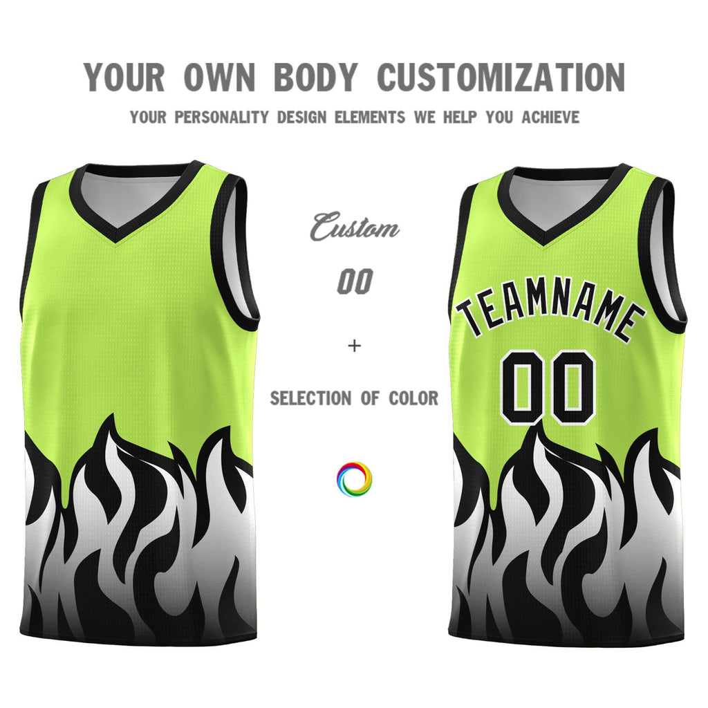 Custom Neon Green Black Hem Flame Pattern Fashion Sports Uniform Basketball jersey