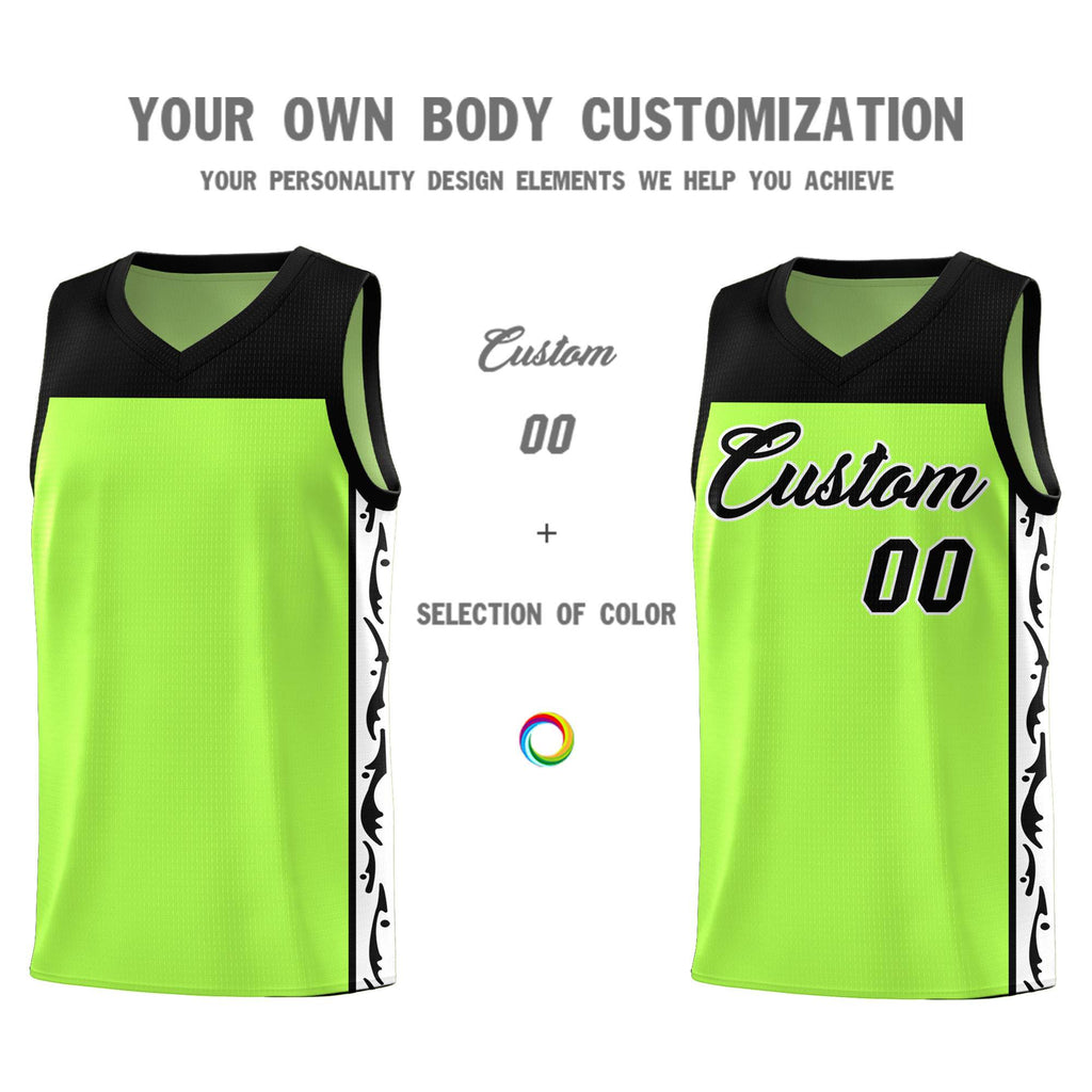 Custom Neon Green Side Pattern Sports Uniform Basketball Jersey