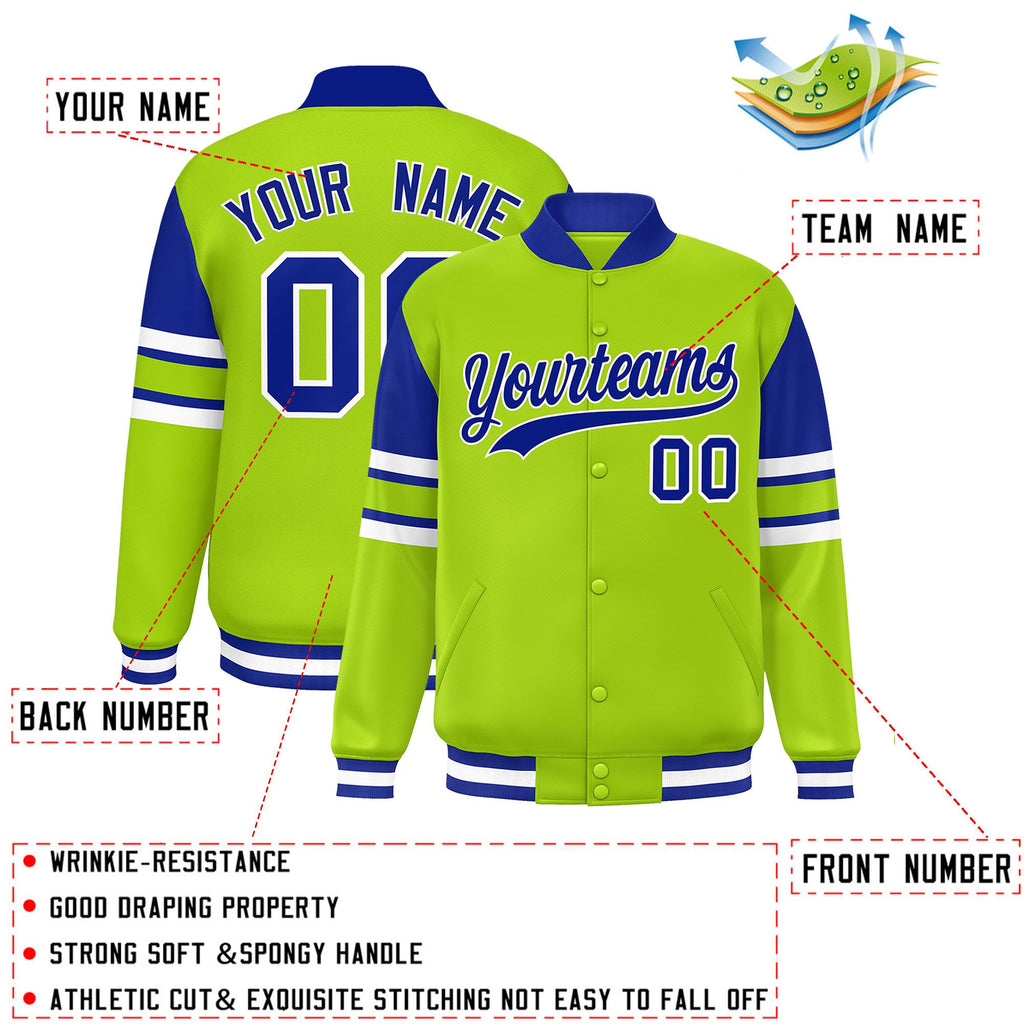 Custom Neon Green Varsity Full-Snap Color Block Letterman Jacket