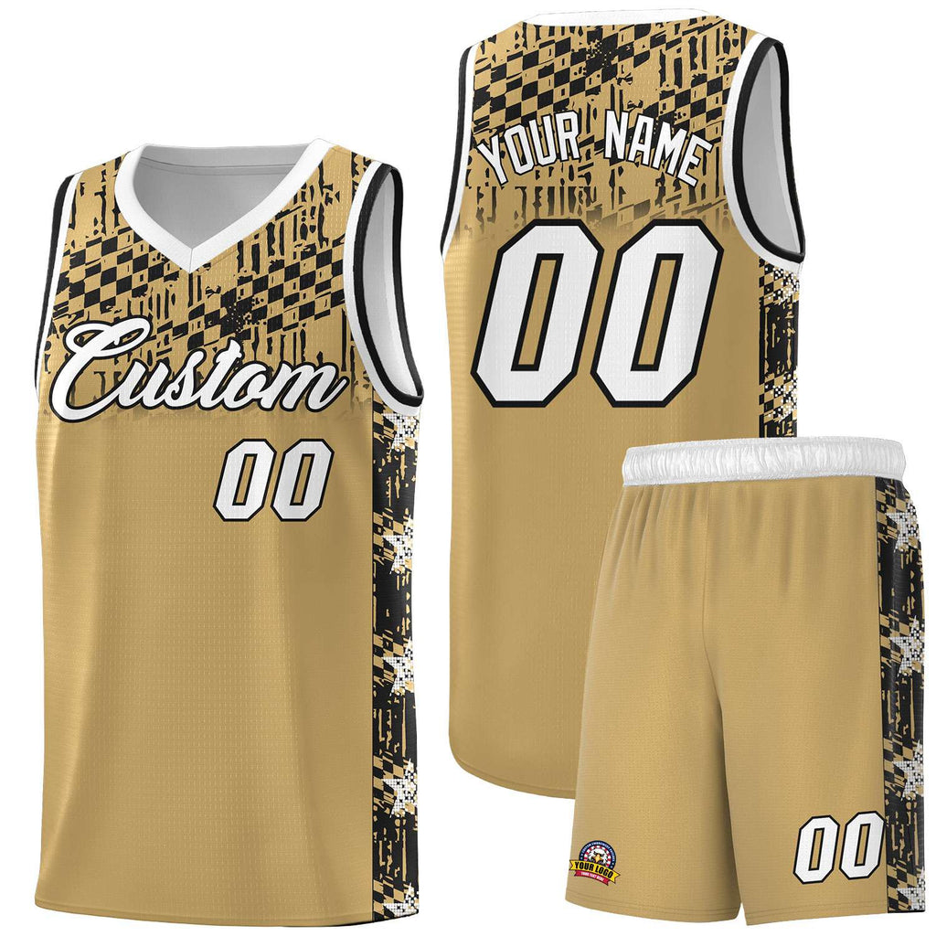 Custom Old Gold Mosaic Stars Pattern Sports Uniform Basketball Jersey
