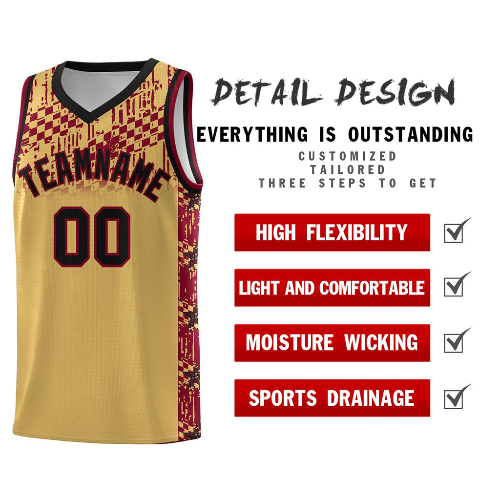 Custom Old Gold Mosaic Stars Pattern Sports Uniform Basketball Jersey