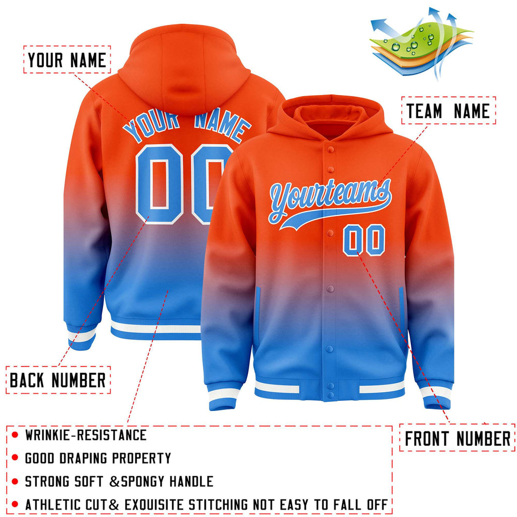 Custom Orange Blue Varsity Full-Snap Letterman Gradient Jacket Hoodie