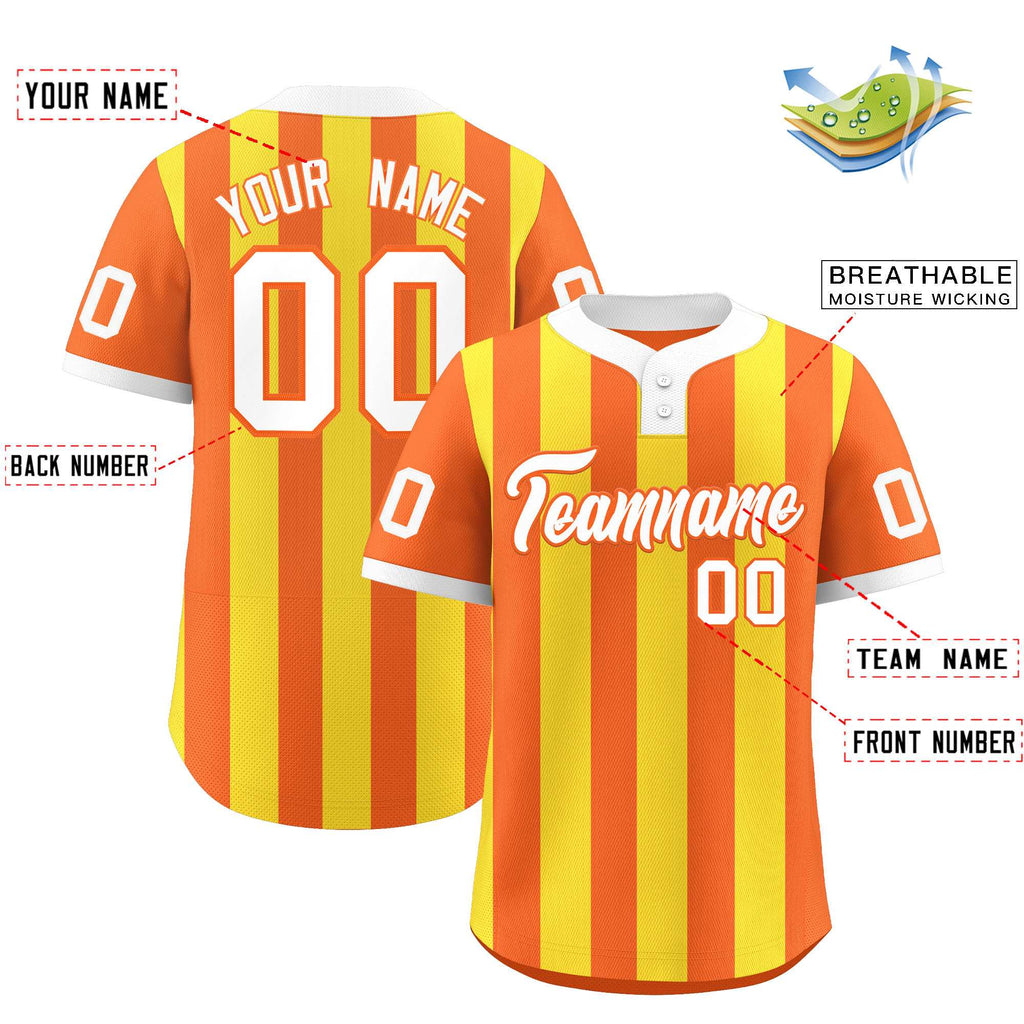 Custom Orange Gold Stripe Fashion Authentic Two-Button Baseball Jersey