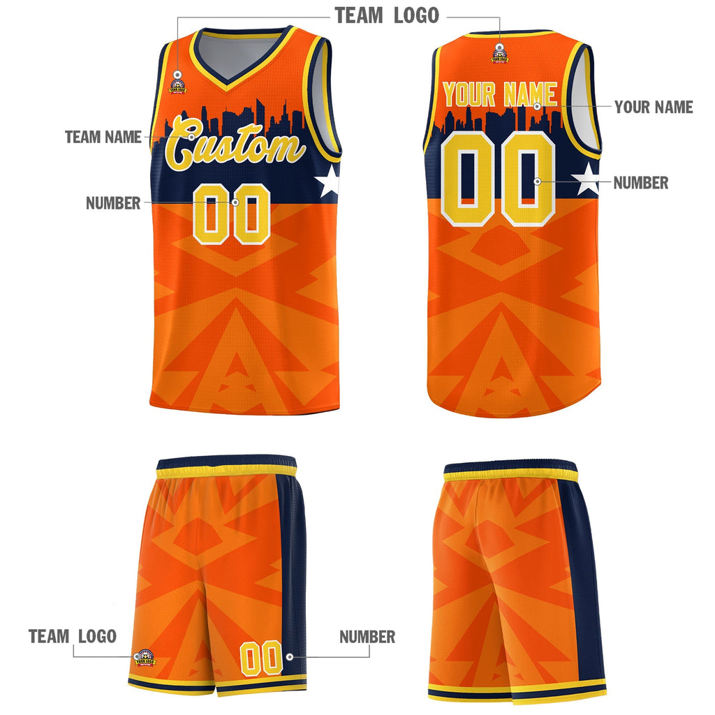Custom Orange Personalized City Silhouette Pattern Sports Uniform Basketball Jersey