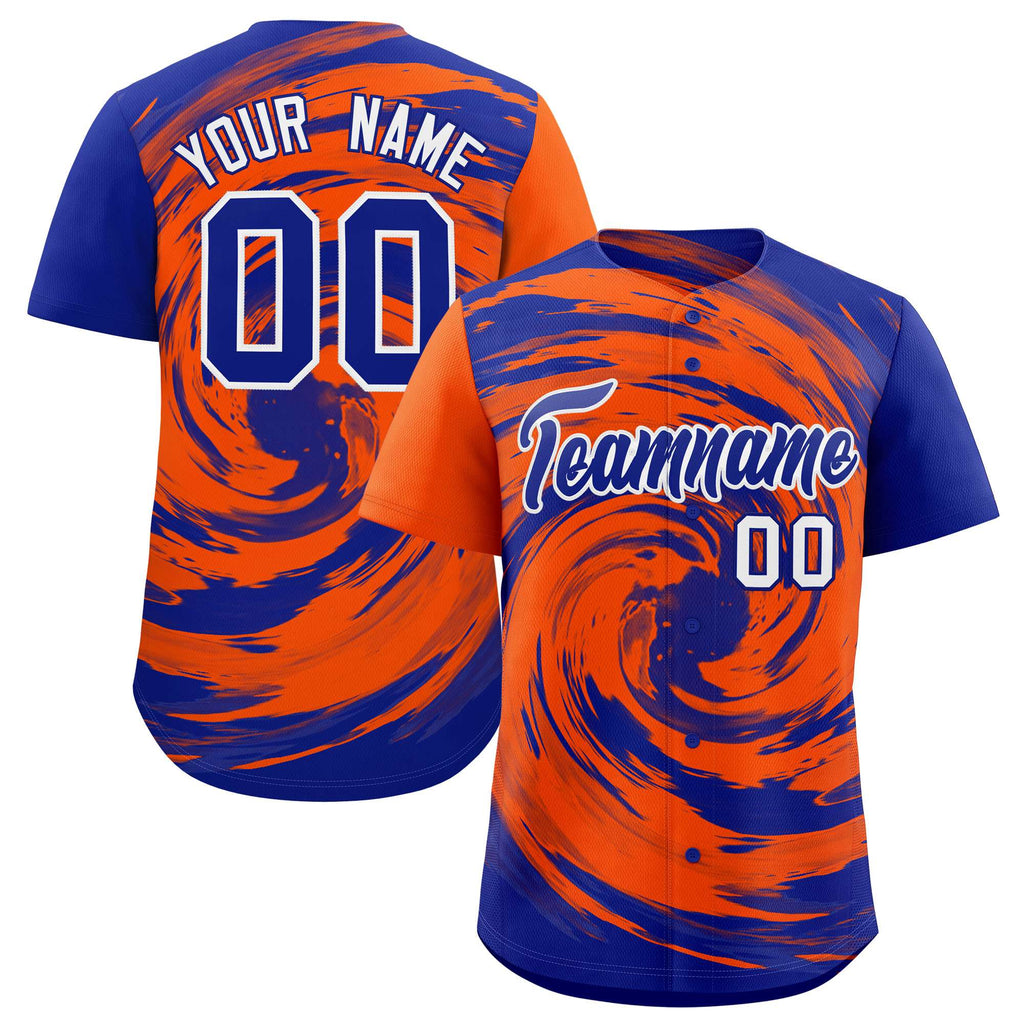 Custom Orange Royal Swirl Graffiti Pattern Authentic Baseball Jersey