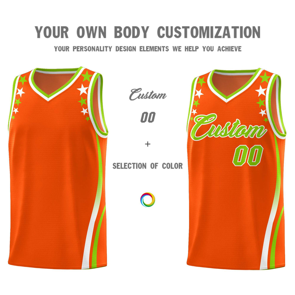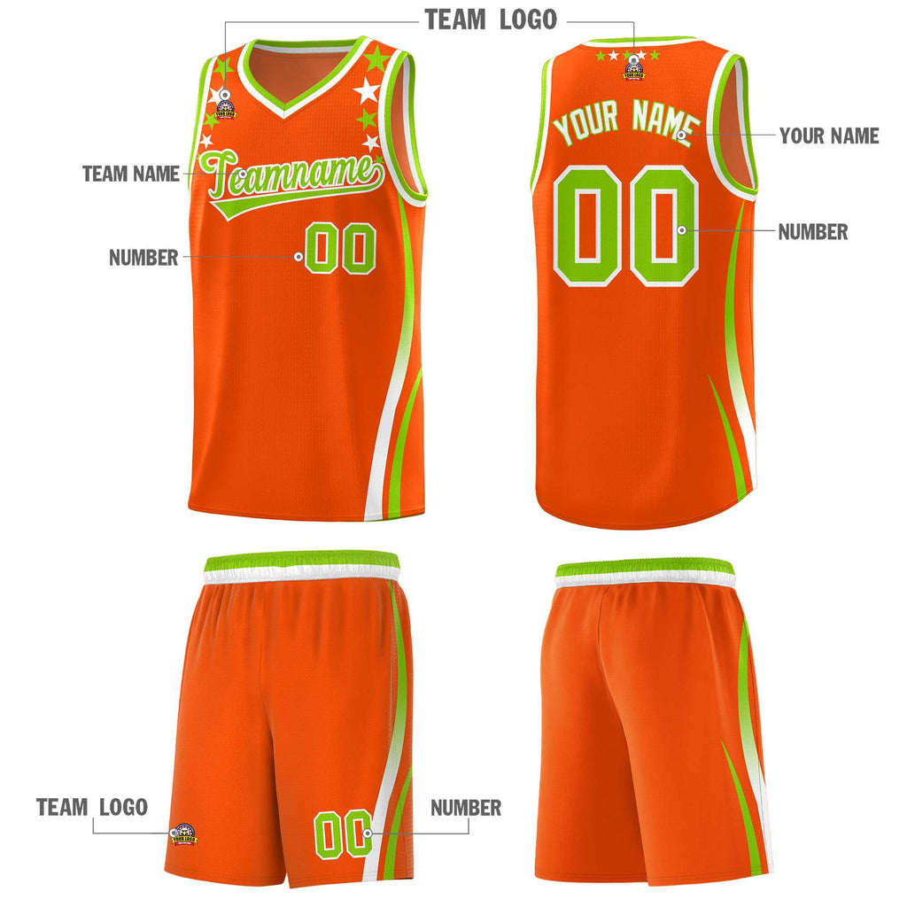 Custom Orange Shoulders Star Pattern Side Color Block Sports Uniform Basketball Jersey