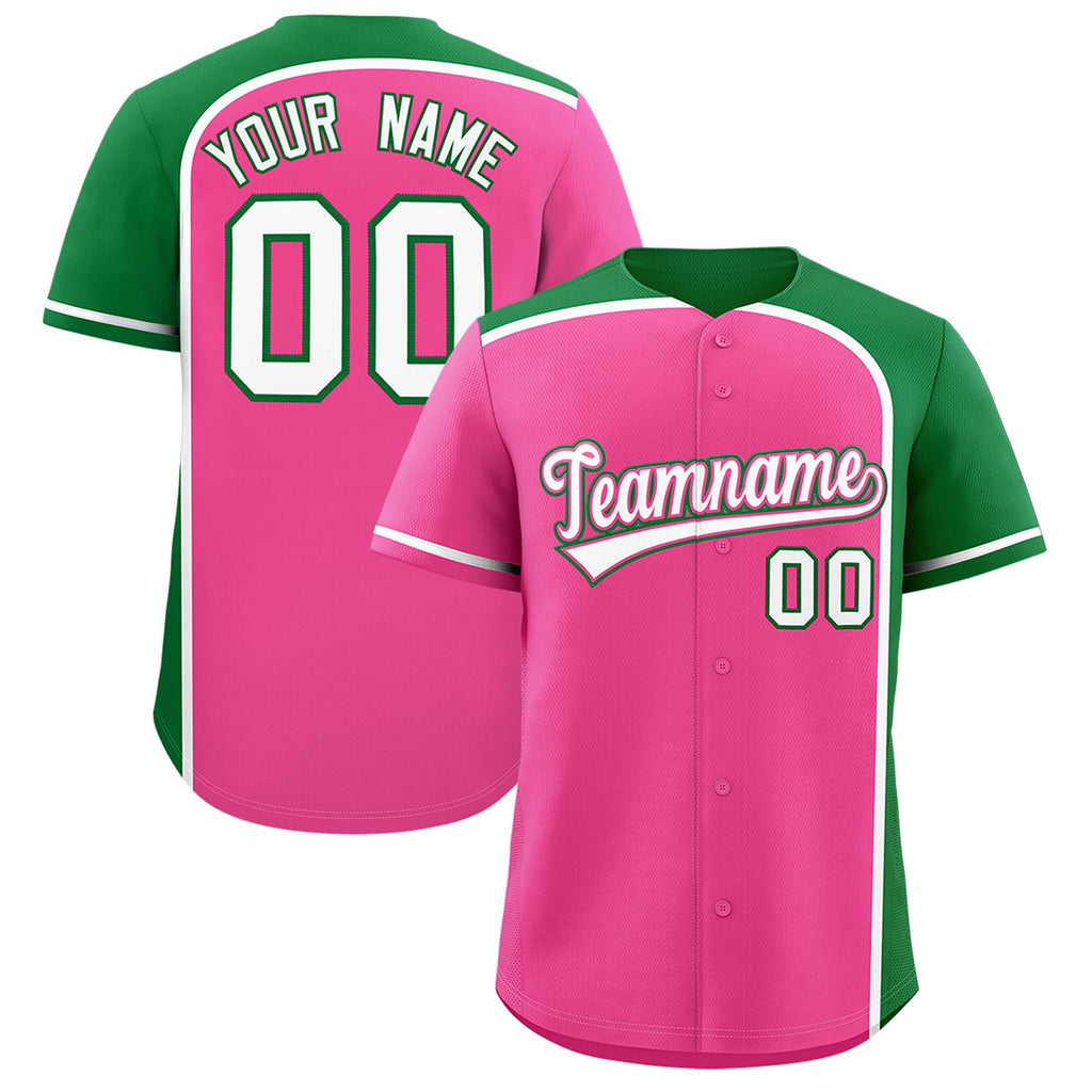 Custom Pink Kelly Green Personalized Color Block Authentic Baseball jersey