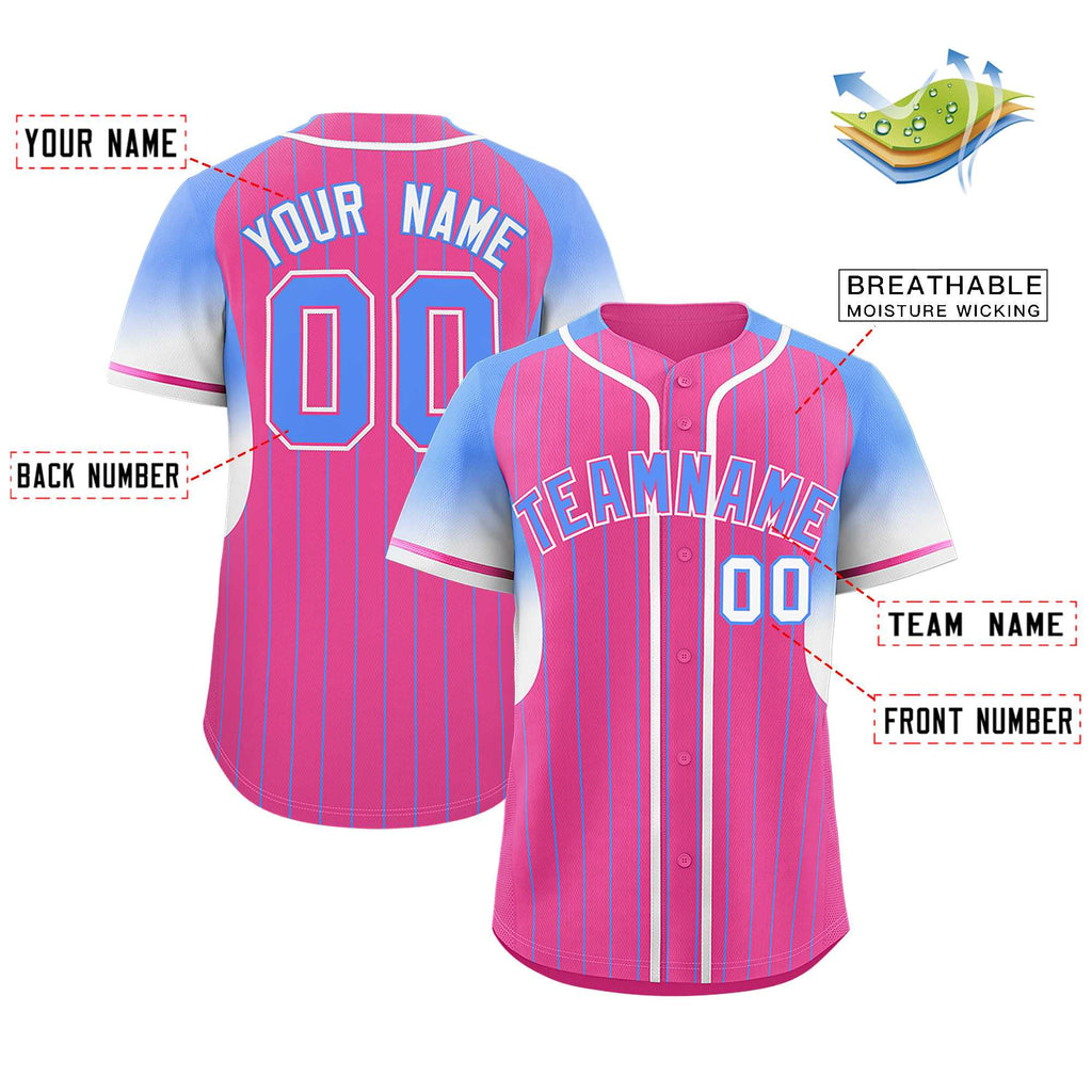 Custom Pink Powder Blue Stripe Fashion Sleeves Gradient Authentic Baseball Jersey