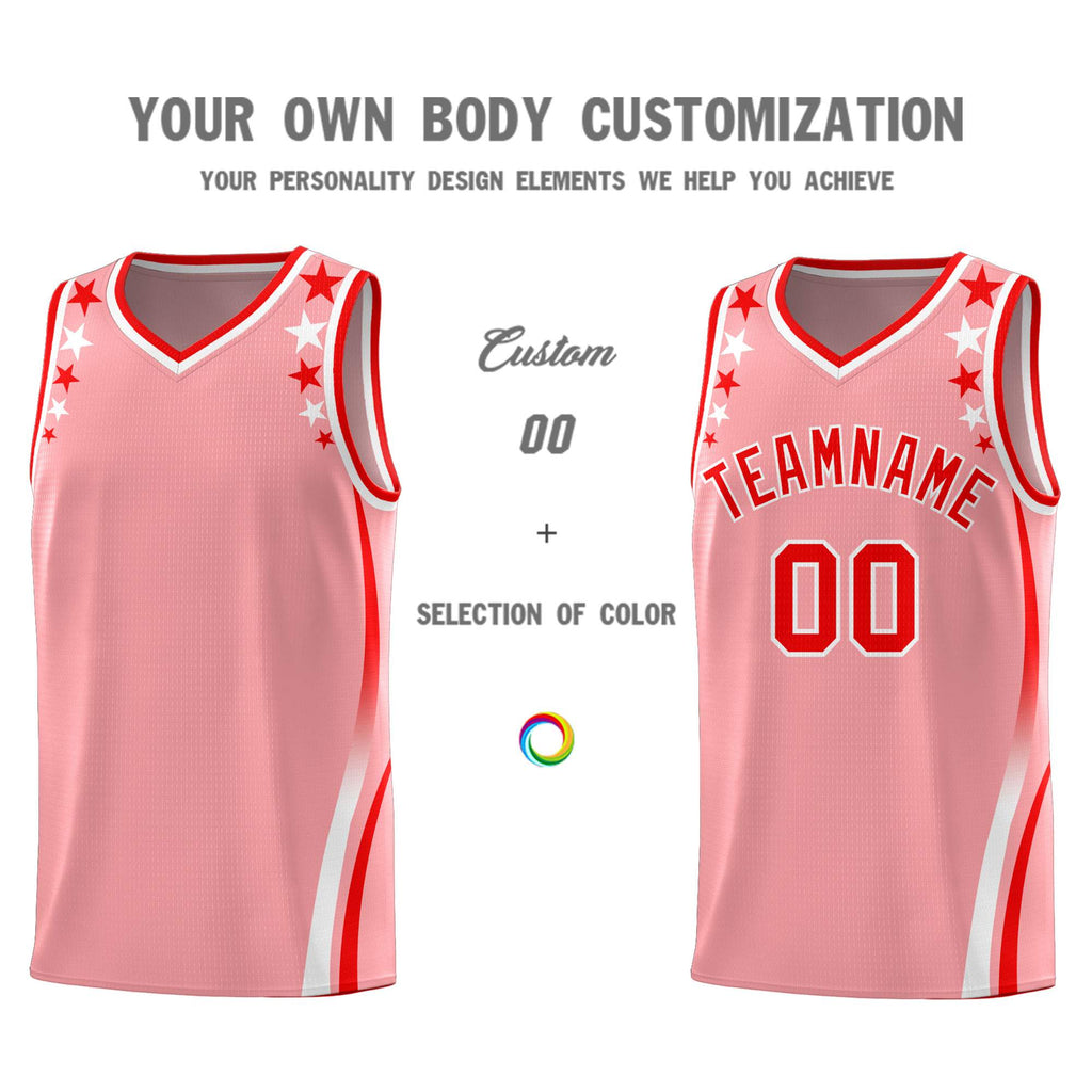 Custom Pink Shoulders Star Pattern Side Color Block Sports Uniform Basketball Jersey