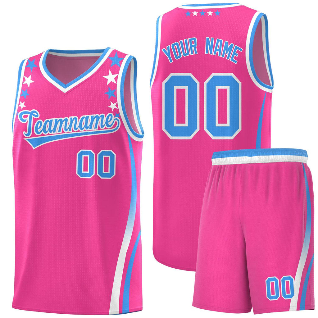 Custom Pink Shoulders Star Pattern Side Color Block Sports Uniform Basketball Jersey