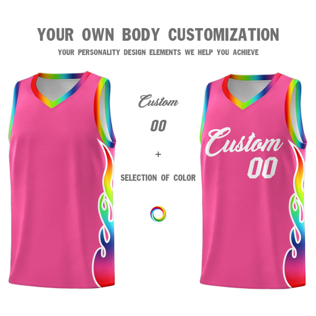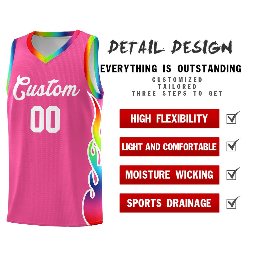 Custom Pink Side Flame Pattern Fashion Sports Uniform Basketball Jersey