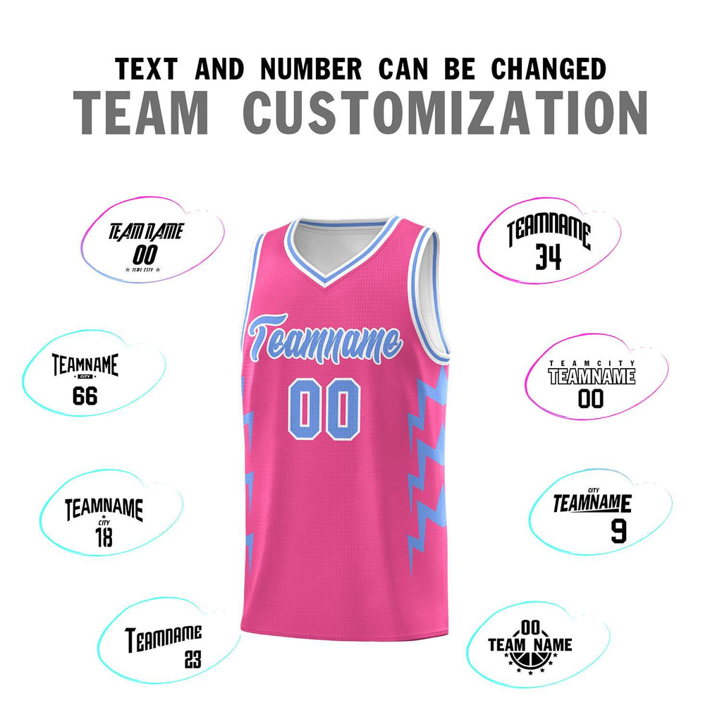 Custom Pink Side Lightning Pattern Sports Uniform Basketball Jersey