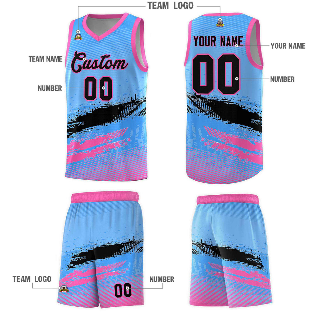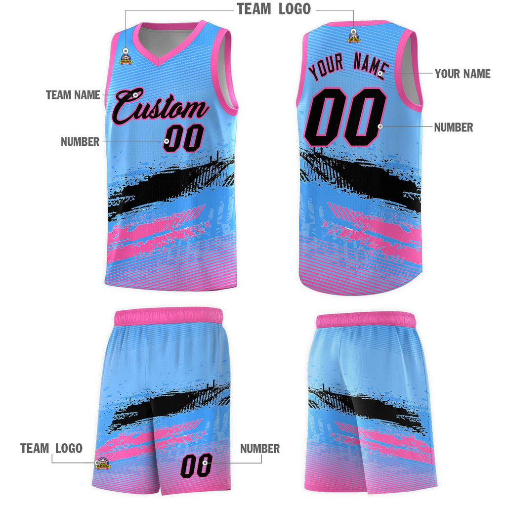 Custom Powder Blue Black and Pink Graffiti Pattern Sports Uniform Basketball Jersey