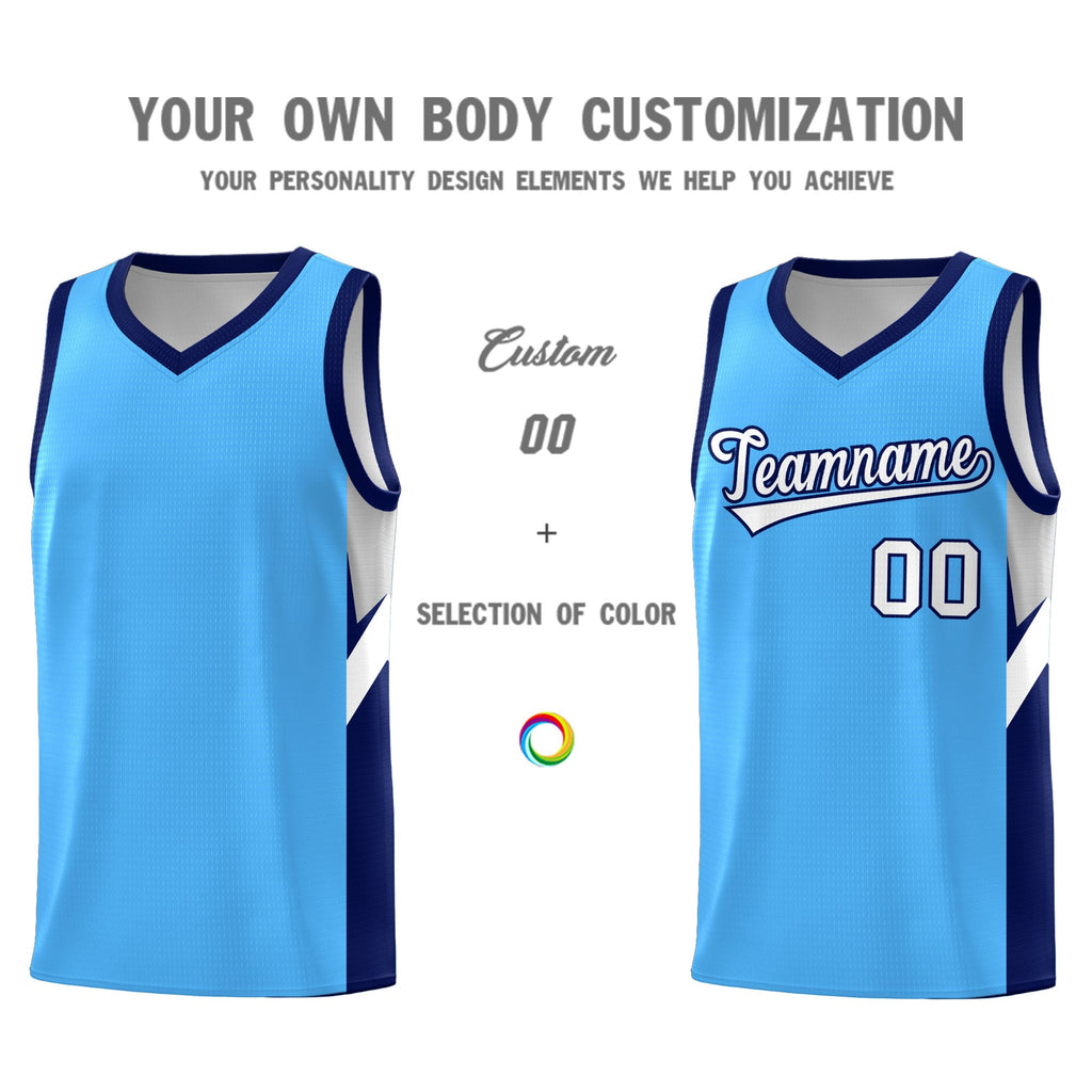 Custom Powder Blue Navy Side Design Sets Sports Uniform Basketball Jersey