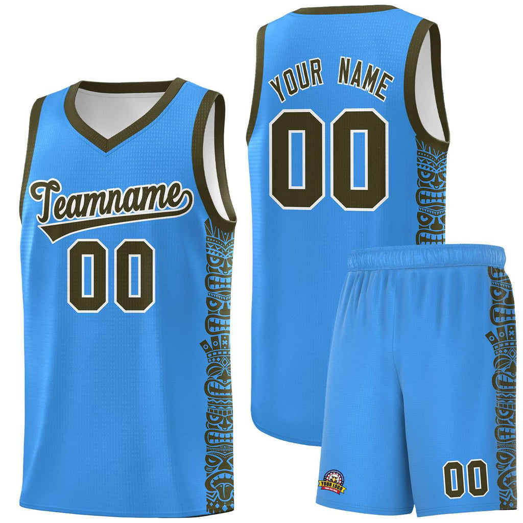 Custom Powder Blue Olive Personalized Indians Pattern Sets Sports Uniform Basketball Jersey