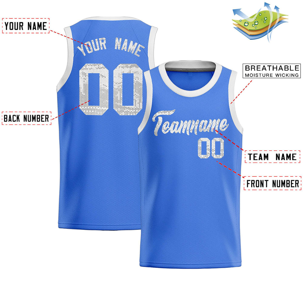 Custom Powder Blue Sequined Tops Athletic Basketball Jersey