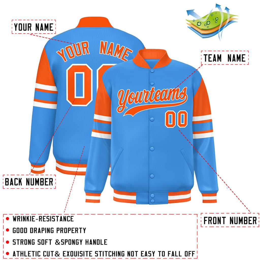 Custom Powder Blue Varsity Full-Snap Color Block Letterman Jacket