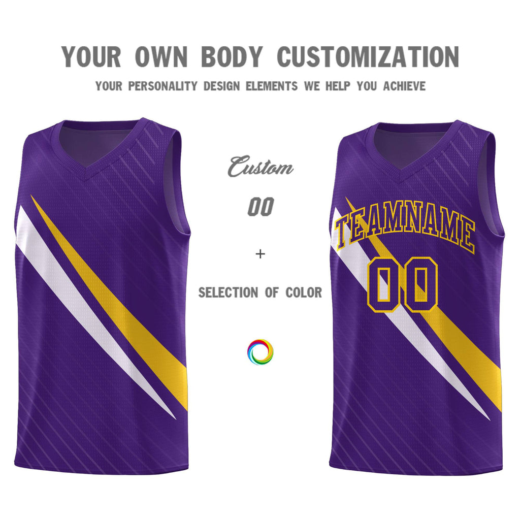 Custom Purple Diagonal Pinstripe Pattern Color Block Sports Uniform Basketball Jersey