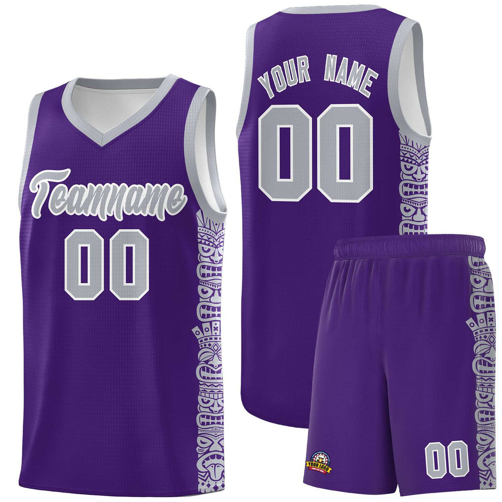 Custom Purple Gray Personalized Indians Pattern Sets Sports Uniform Basketball Jersey