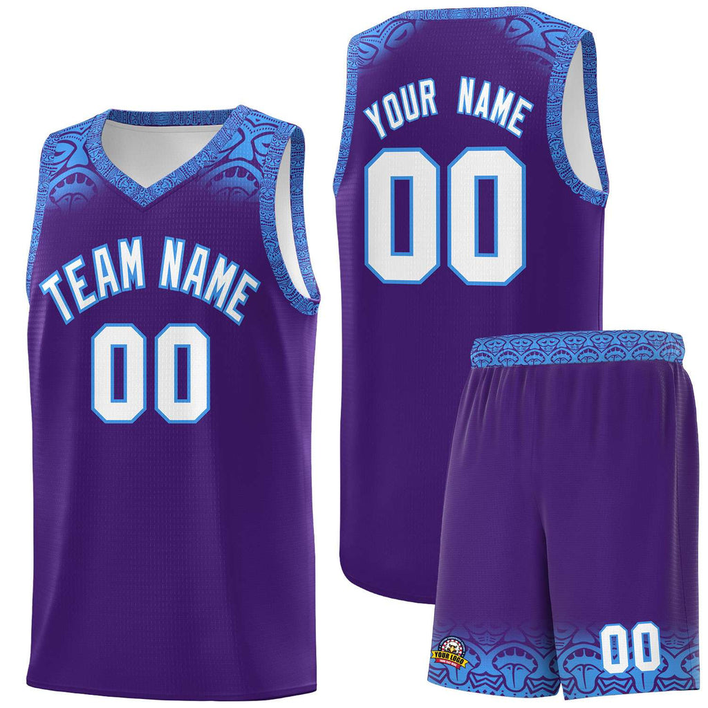 Custom Purple Powder Blue Personalized Indians Print Sets Sports Uniform Basketball Jersey