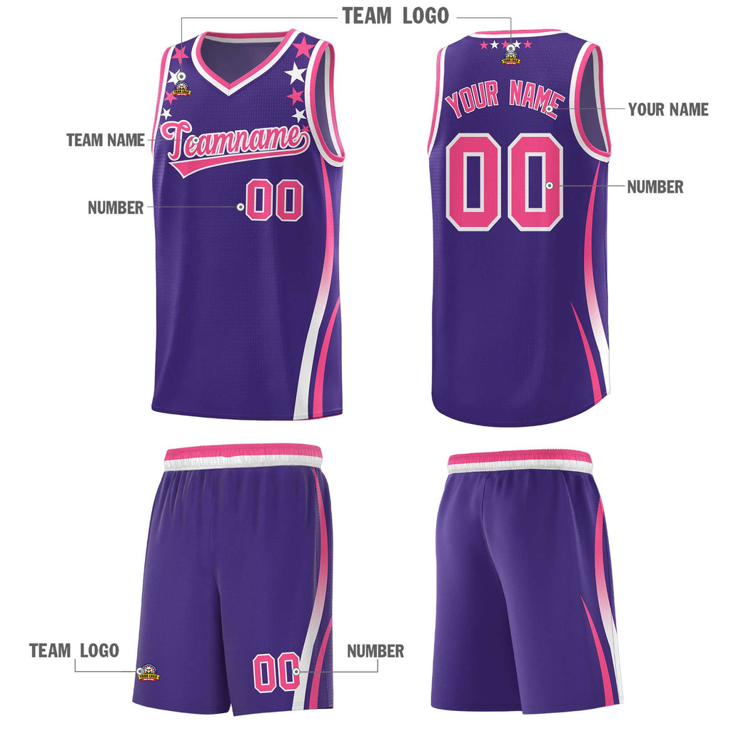 Custom Purple Shoulders Star Pattern Side Color Block Sports Uniform Basketball Jersey