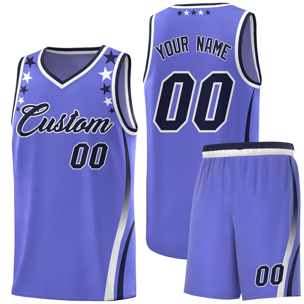 Custom Purple Shoulders Star Pattern Side Color Block Sports Uniform Basketball Jersey