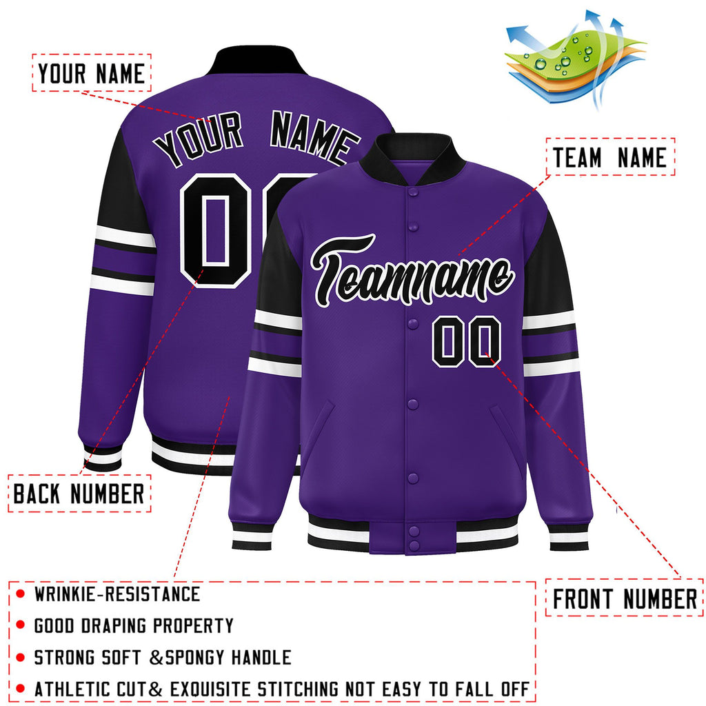 Custom Purple Varsity Full-Snap Color Block Letterman Jacket