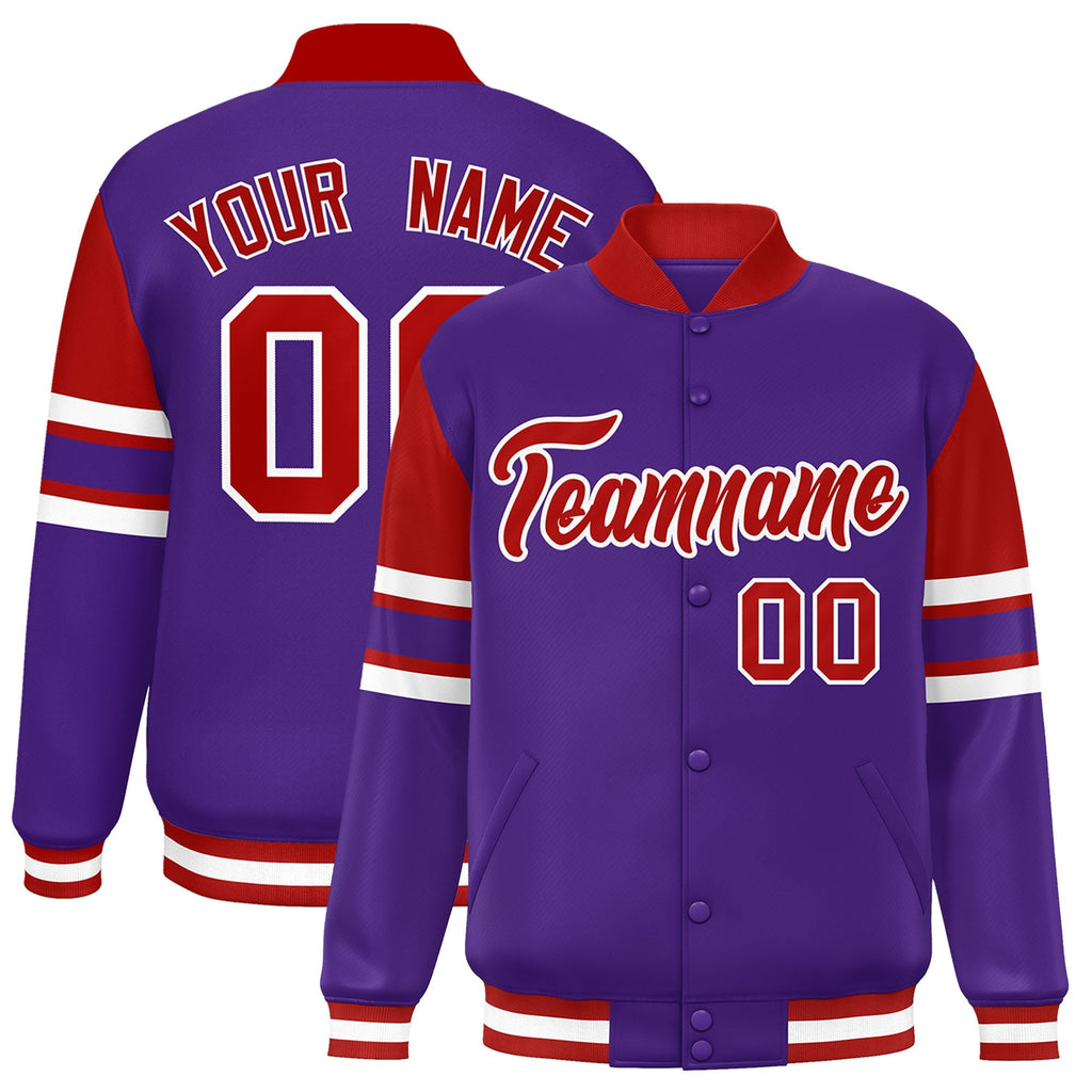 Custom Purple Varsity Full-Snap Color Block Letterman Jacket
