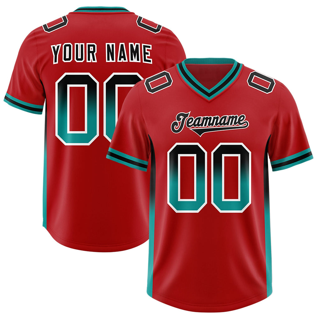 Custom Red Black and Aqua Sides Gradient Fashion Personalized Team Football Jersey