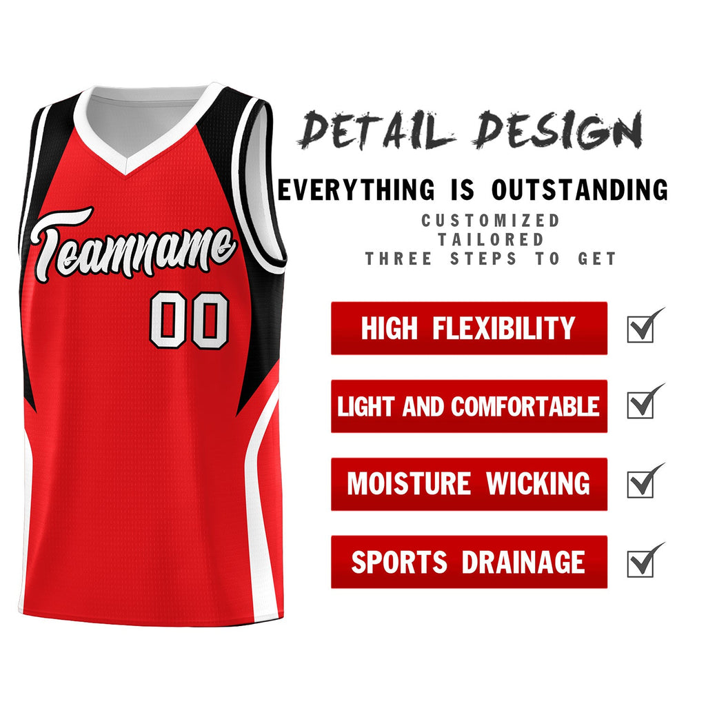 Custom Red Black and White Color Block Sports Uniform Basketball Jersey