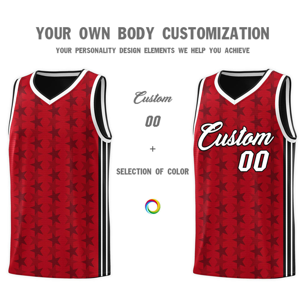 Custom Red Black Star Graffiti Pattern Sets Sports Uniform Basketball Jersey