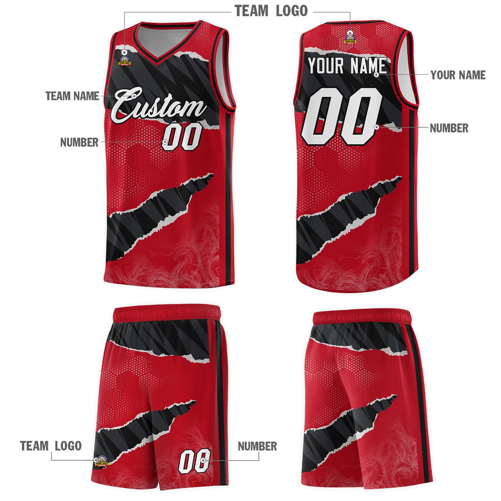 Custom Red Black-White Tear Graffiti Pattern Sports Uniform Basketball Jersey