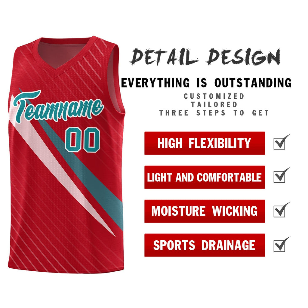 Custom Red Diagonal Pinstripe Pattern Color Block Sports Uniform Basketball Jersey