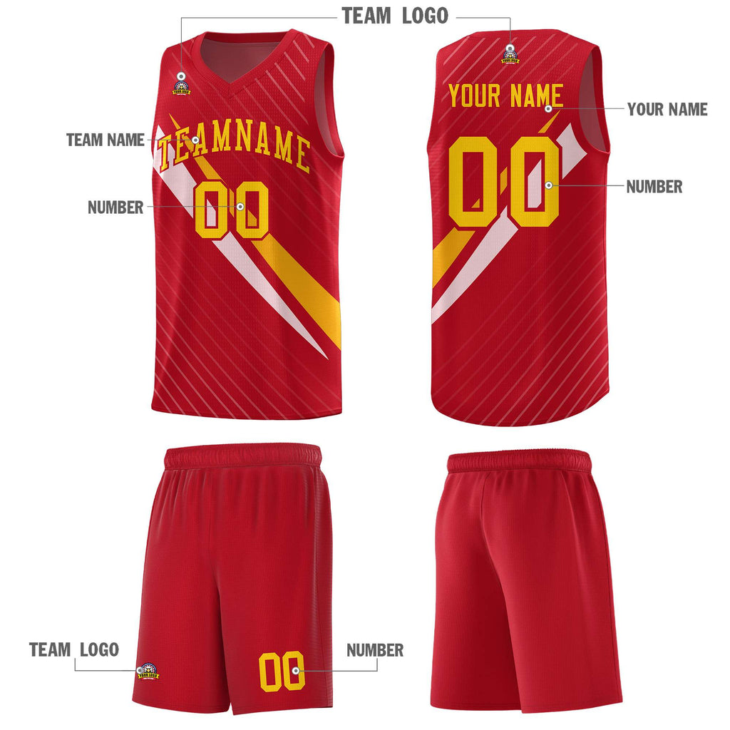 Custom Red Diagonal Pinstripe Pattern Color Block Sports Uniform Basketball Jersey