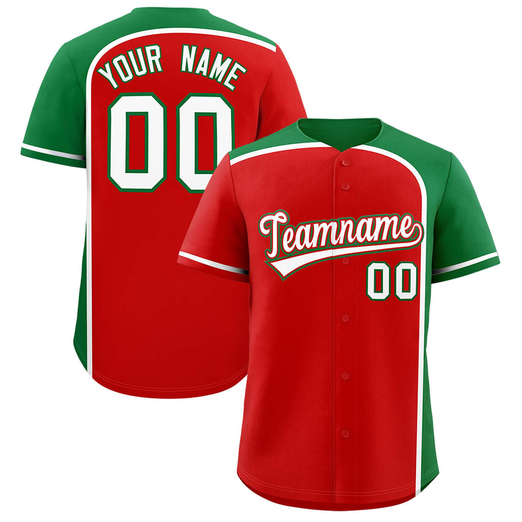 Custom Red Kelly Green Personalized Color Block Authentic Baseball jersey