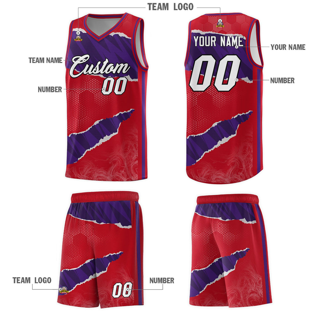 Custom Red Purple-Black Tear Graffiti Pattern Sports Uniform Basketball Jersey